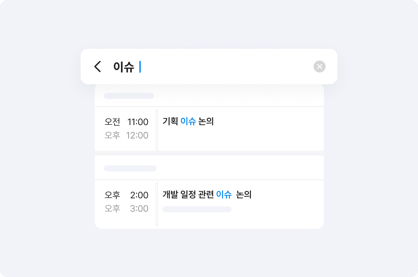 장소, 참석자, 메모 등과 같은 키워드 검색을 통해서도 찾고자 하는 일정을 검색할 수 있습니다.