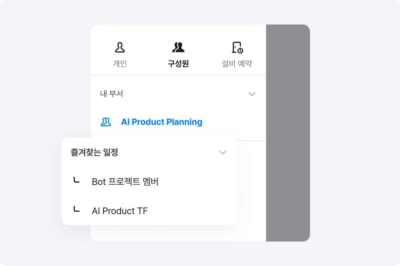 자주 연락하는 팀원의 일정을 확인하기 위해 일일이 검색하지 않아도 됩니다.