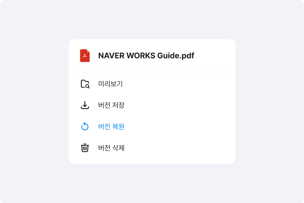 파일을 덮어쓰는 경우 파일 버전 별 이력을 확인하여 특정 버전으로 복원할 수 있습니다.