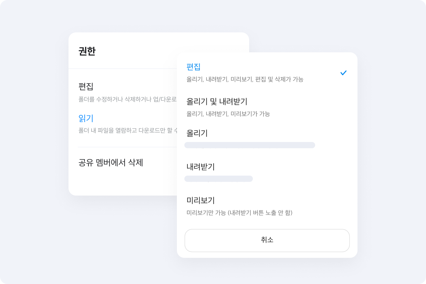 파일 또는 폴더 별 상세 권한 설정으로 회사 데이터를 더욱 안전하게 보호 할 수 있어요.
