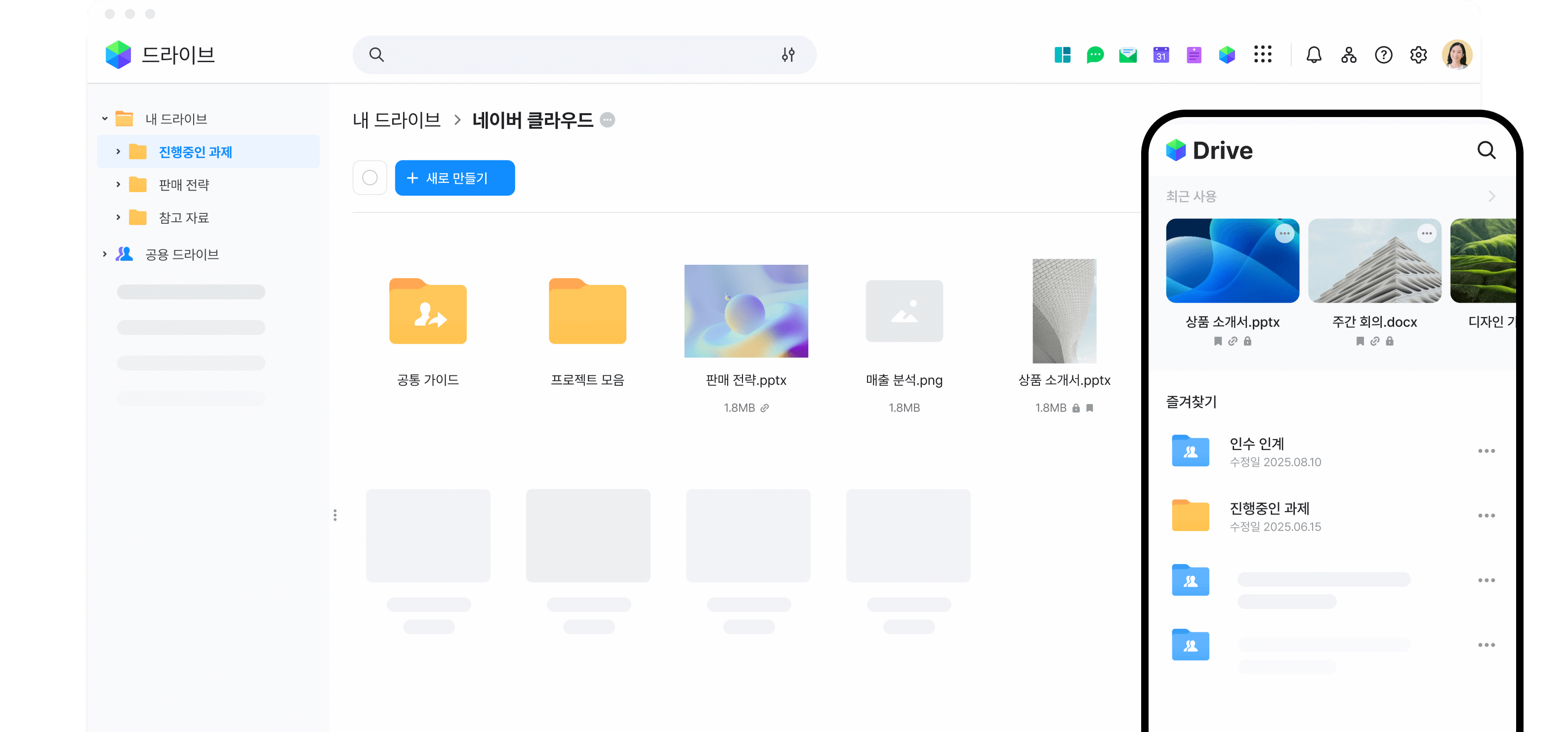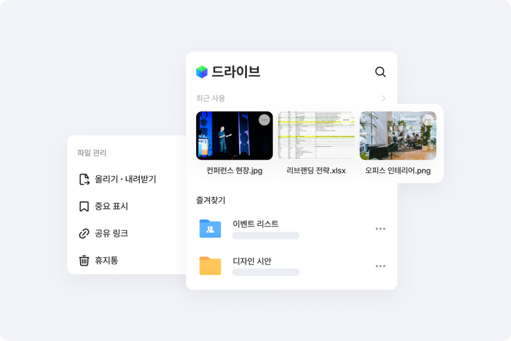 개인 PC, 메시지, 메일 등 곳곳에 흩어진 업무 파일을 네이버웍스 드라이브 한곳에서
