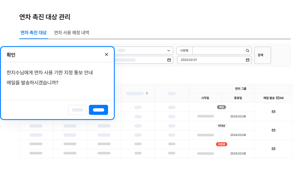 연차 촉진 시기에 대상자에게 연차 사용 계획서를 요청할 수 있어요.