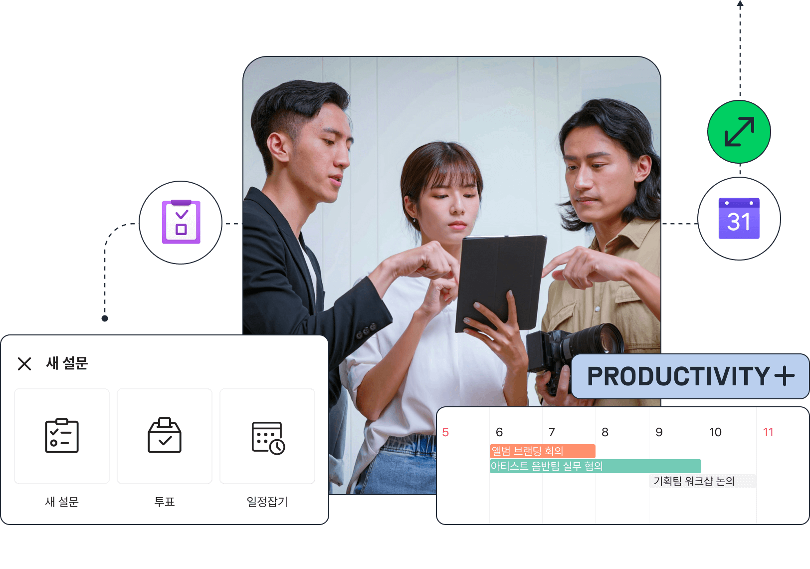 다수의 참여가 필요한 콘텐츠 런칭. 네이버웍스로 집중형 협업을 시작해 보세요.