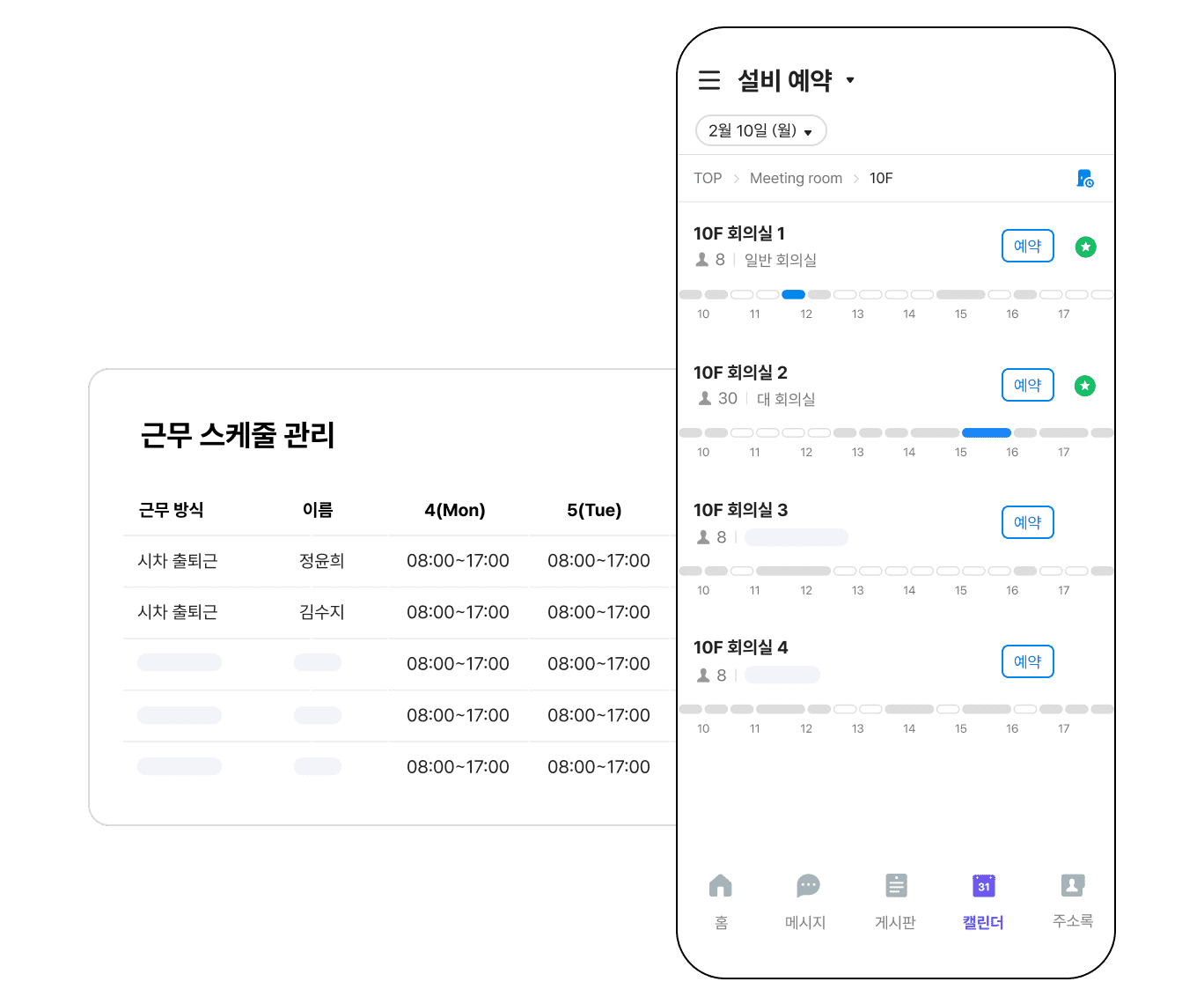 ‘근무 스케줄 관리’로 구성원의 교대 근무 일정을 한 눈에 파악합니다.